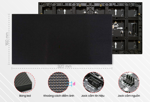 | Cấu tạo điểm ảnh | 1R1G1B (SMD 2121/1515) |